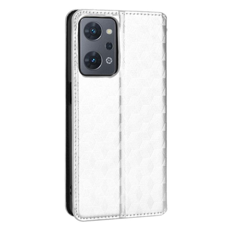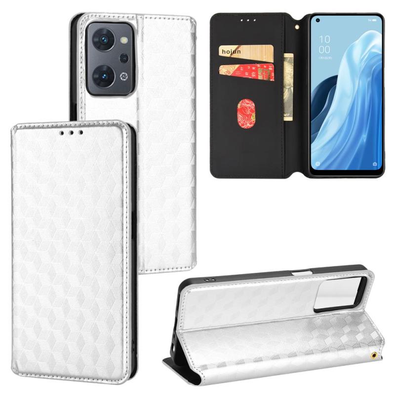 For OPPO Reno9 A Cubic Grid Texture Flip Leather Phone Case(Silver)