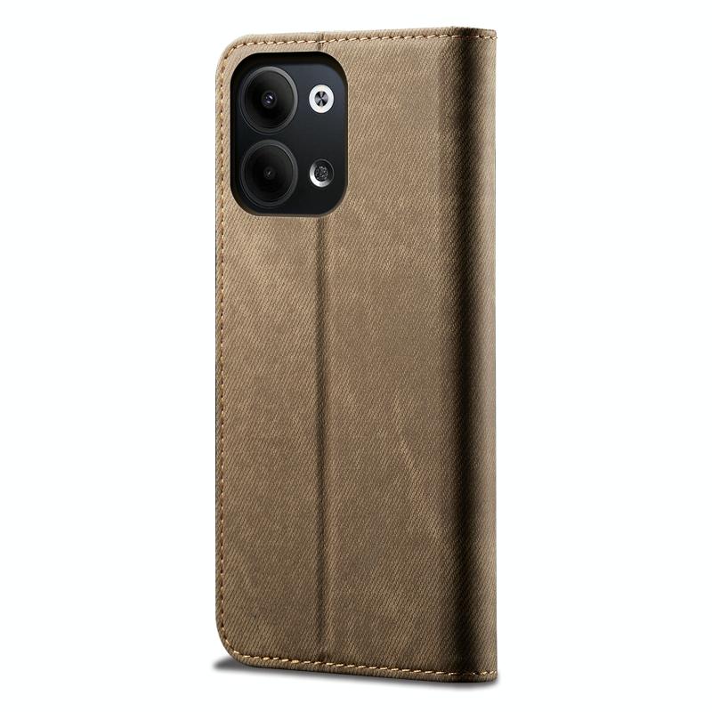 For OPPO Reno9 Denim Texture Leather Phone Case(Khaki)