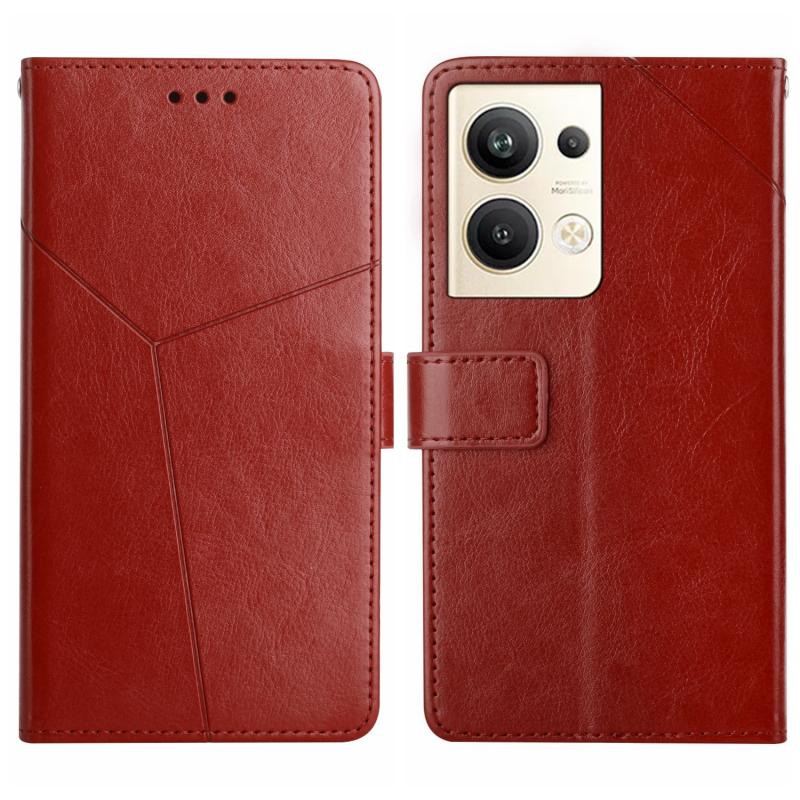 For OPPO Reno9 Pro+ HT01 Y-shaped Pattern Flip Leather Phone Case(Brown)