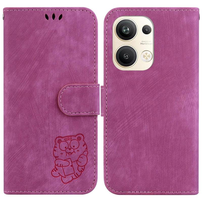 For OPPO Reno9 Pro+ Little Tiger Embossed Leather Phone Case(Rose Red)