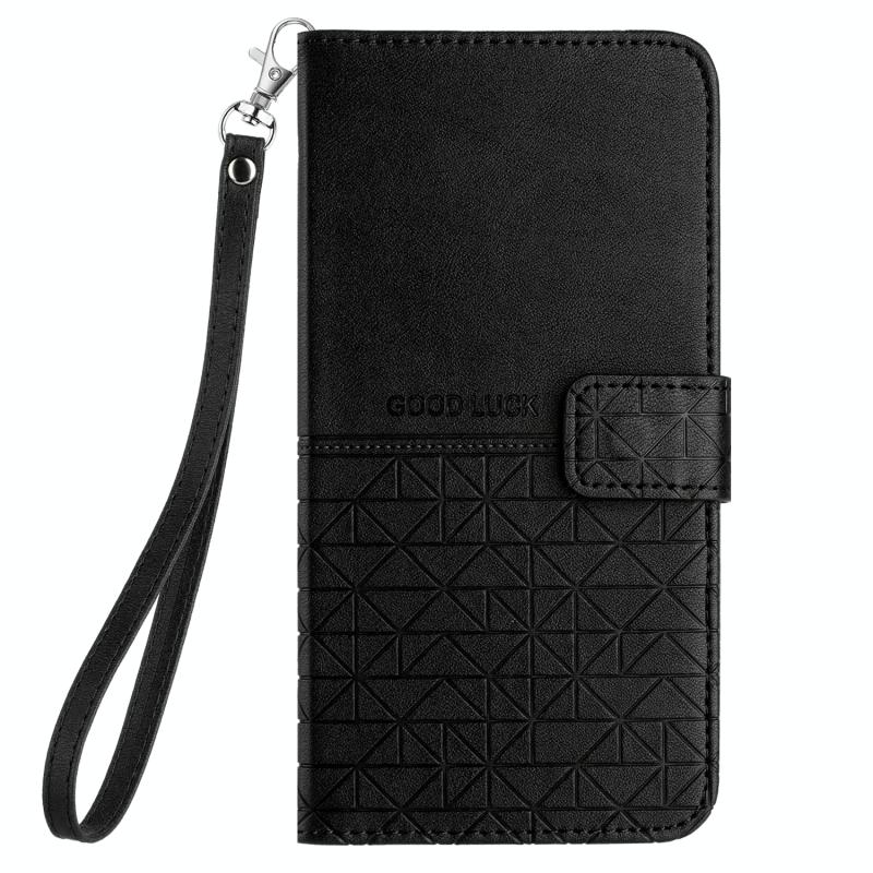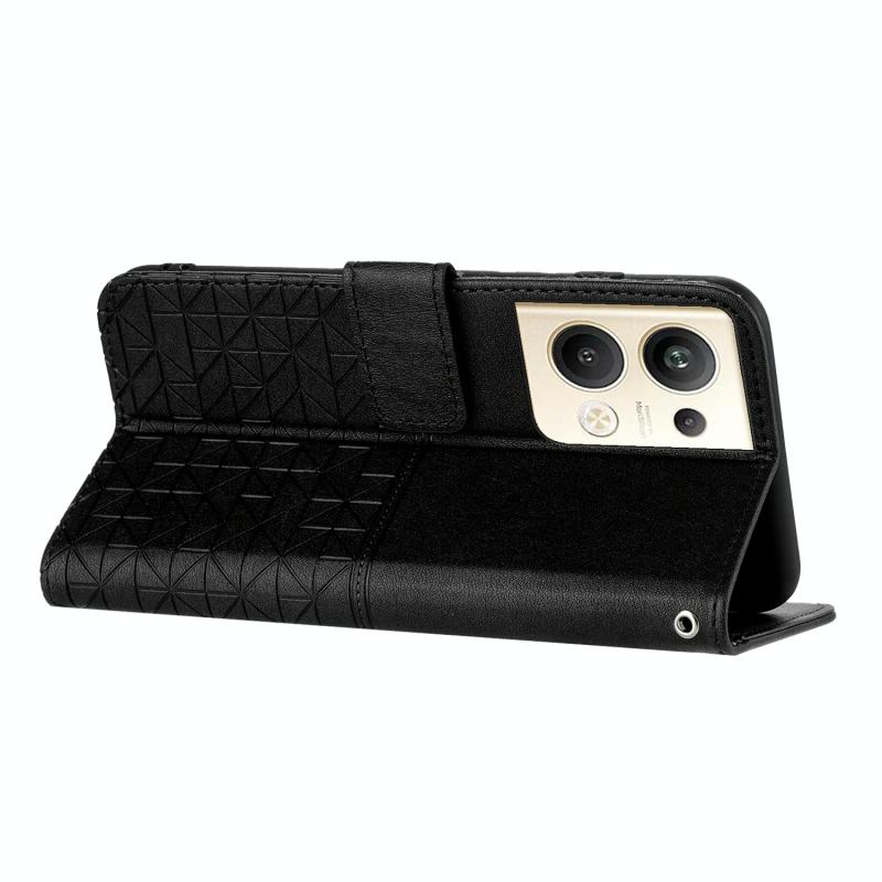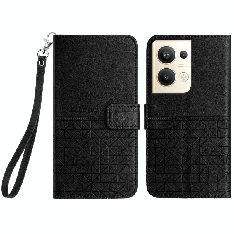 For OPPO Reno9 Pro+ Rhombic Texture Leather Phone Case with Lanyard(Black)