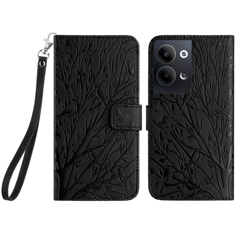 For OPPO Reno9 / Reno9 Pro Tree Birds Embossed Pattern Leather Phone Case(Black)