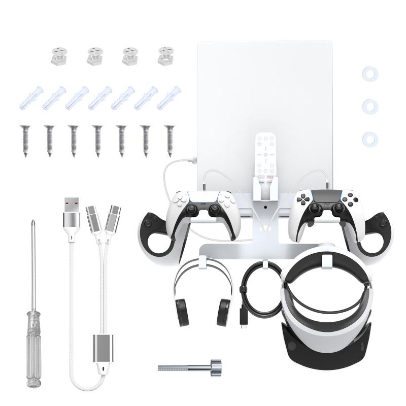 5. Can be used at the same time to display the storage box for PS5 host, 2 for PS5 handle, 1 for remote control, 1 for gaming headset, 1 for PS VR2 helmet, 2 for PS VR2 handle