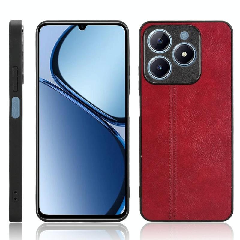 For Realme C63 / C61 4G / Narzo N63 Cow Pattern Sewing Back Cover Phone Case(Red)