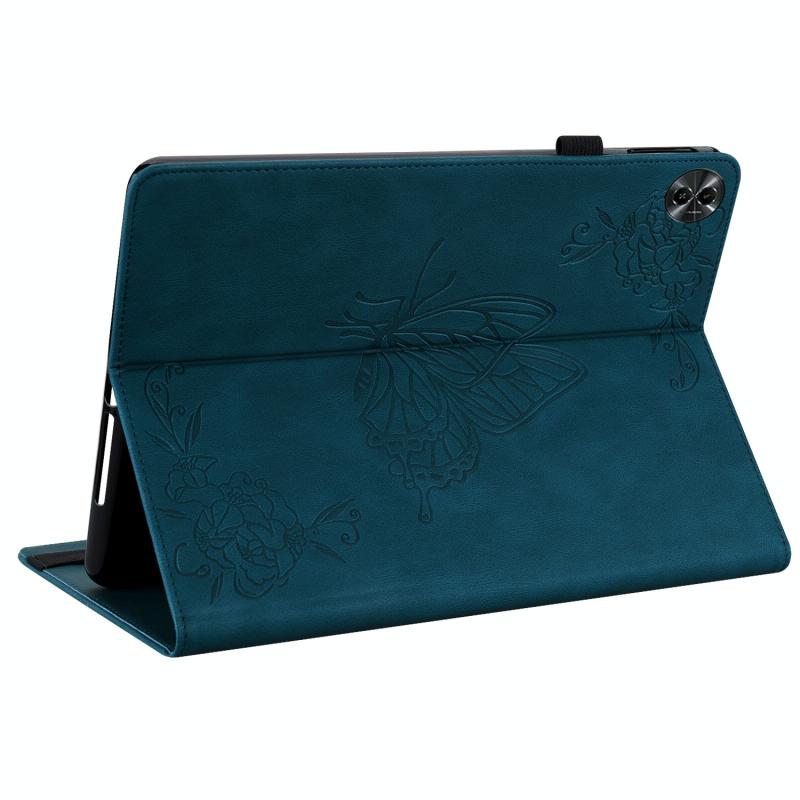 For Realme Pad 2 Butterfly Flower Embossed Leather Tablet Case(Blue)