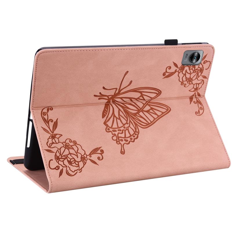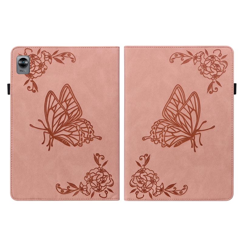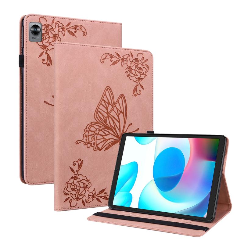 For Realme Pad Mini Butterfly Flower Embossed Leather Tablet Case(Rose Gold)