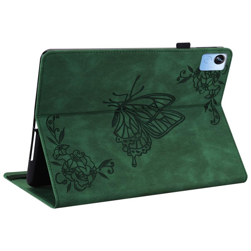 For Realme Pad X Butterfly Flower Embossed Leather Tablet Case(Green)