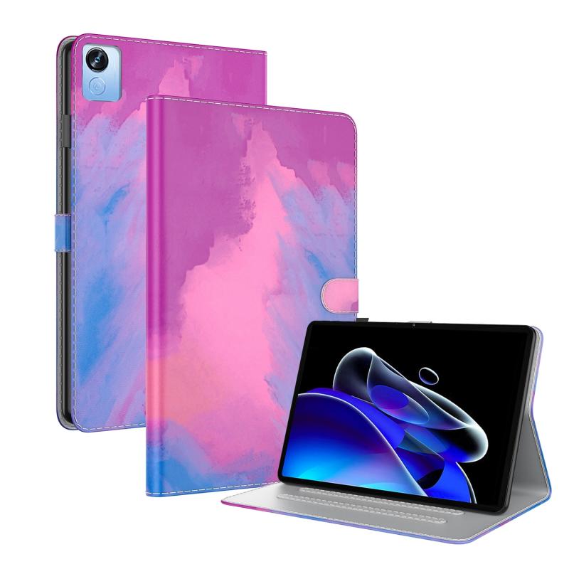 For Realme Pad X Watercolor Pattern Flip Leather Tablet Case(Purple Red)