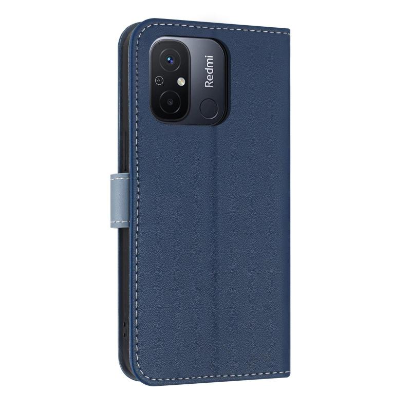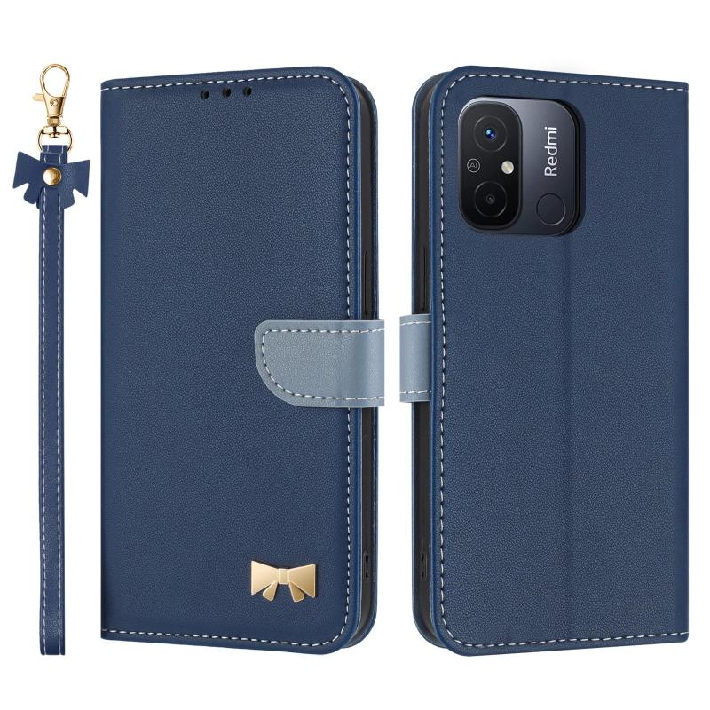 For Redmi 11A / 12C Metal Bow Leather Phone Case with Hand Strap(Dark Blue)