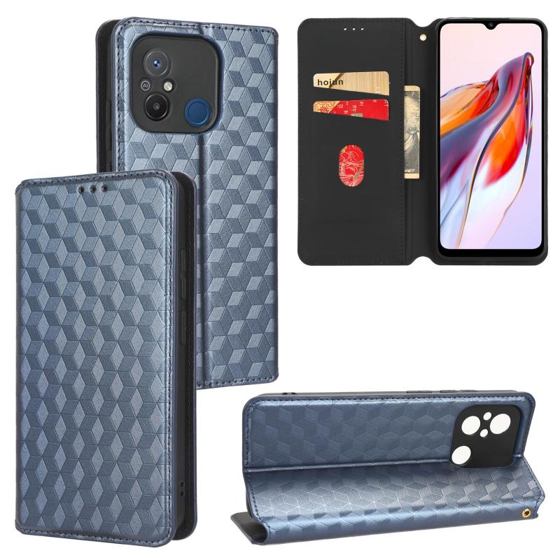 For Redmi 12C / 11A 4G Cubic Grid Texture Flip Leather Phone Case(Blue)