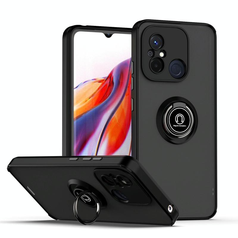 For Redmi 12C / 11A Q Shadow 1 Series TPU + PC Phone Case with Ring(Black+Black)
