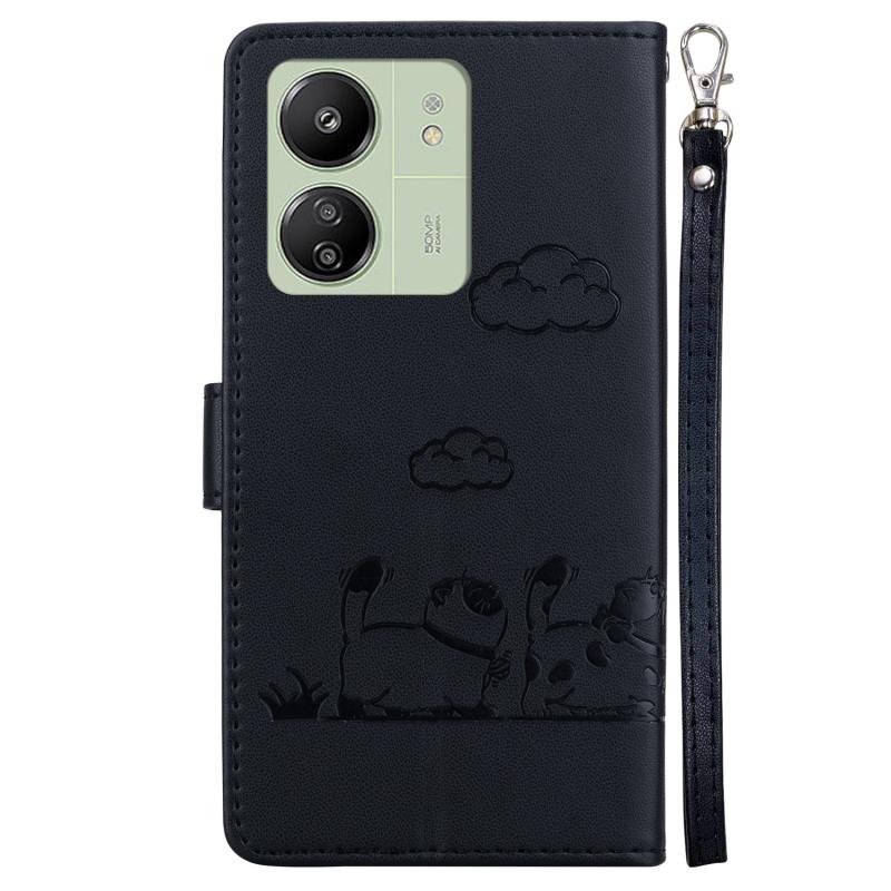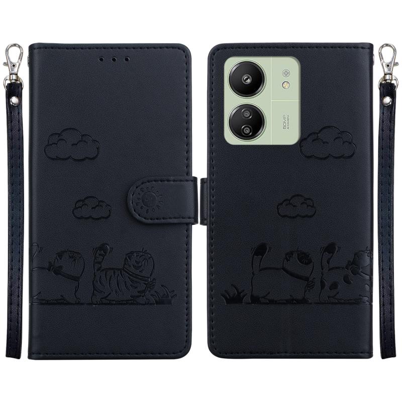 For Redmi 13C 4G / 5G Cute Cats RFID Leather Phone Case(Black)