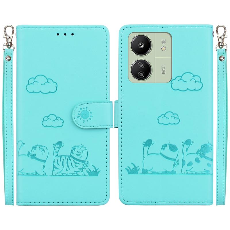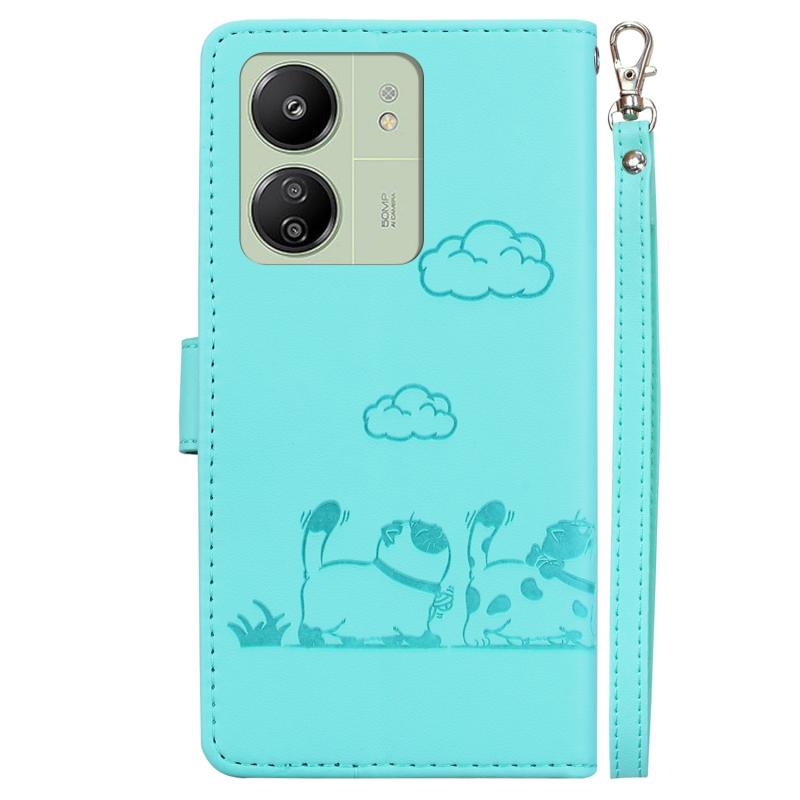 For Redmi 13C 4G / 5G Cute Cats RFID Leather Phone Case(Green)