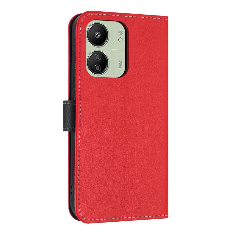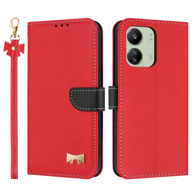 For Redmi 13C 4G Global Metal Bow Leather Phone Case with Hand Strap(Red)