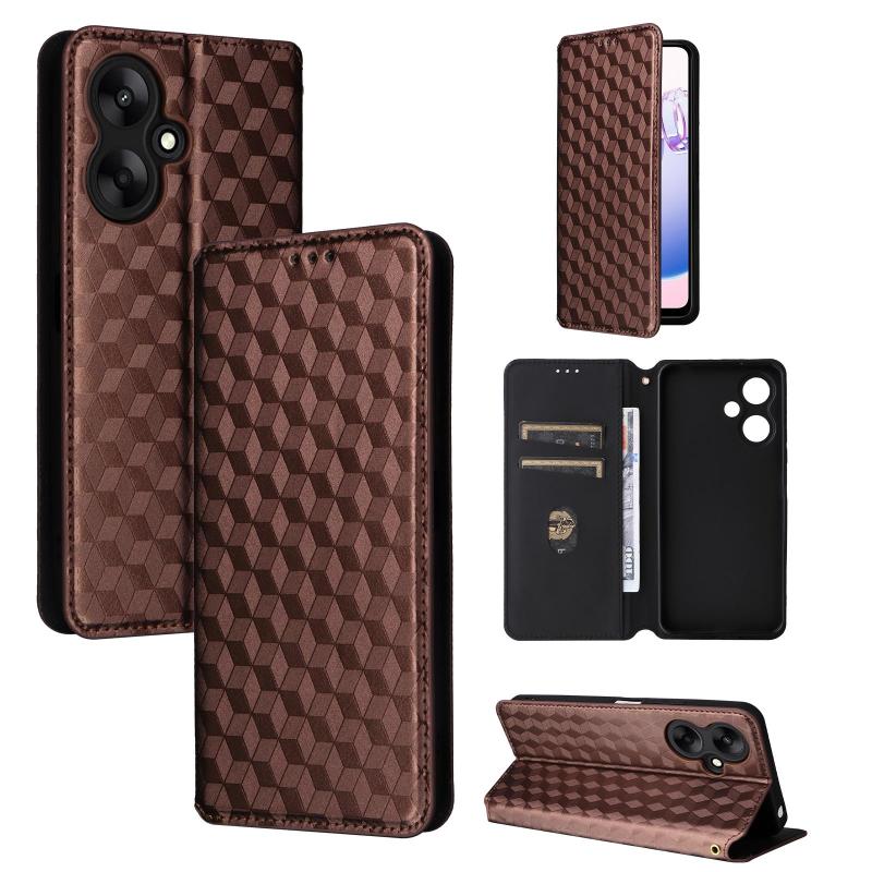 For Redmi 13C 5G / 13R 5G Cubic Grid Texture Flip Leather Phone Case(Brown)