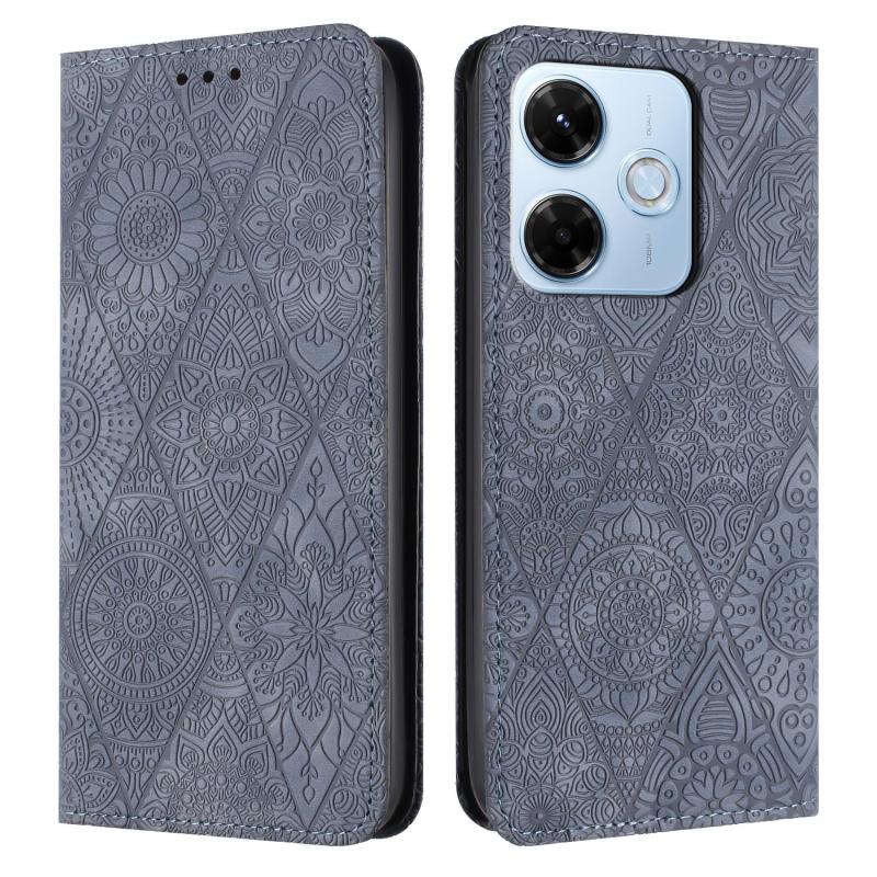 For Redmi 13X Ethnic Embossed Adsorption Leather Phone Case(Grey)