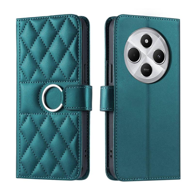 For Redmi 14C 4G / 14R 5G Global Ring Buckle Rhombic Leather Phone Case(Green)