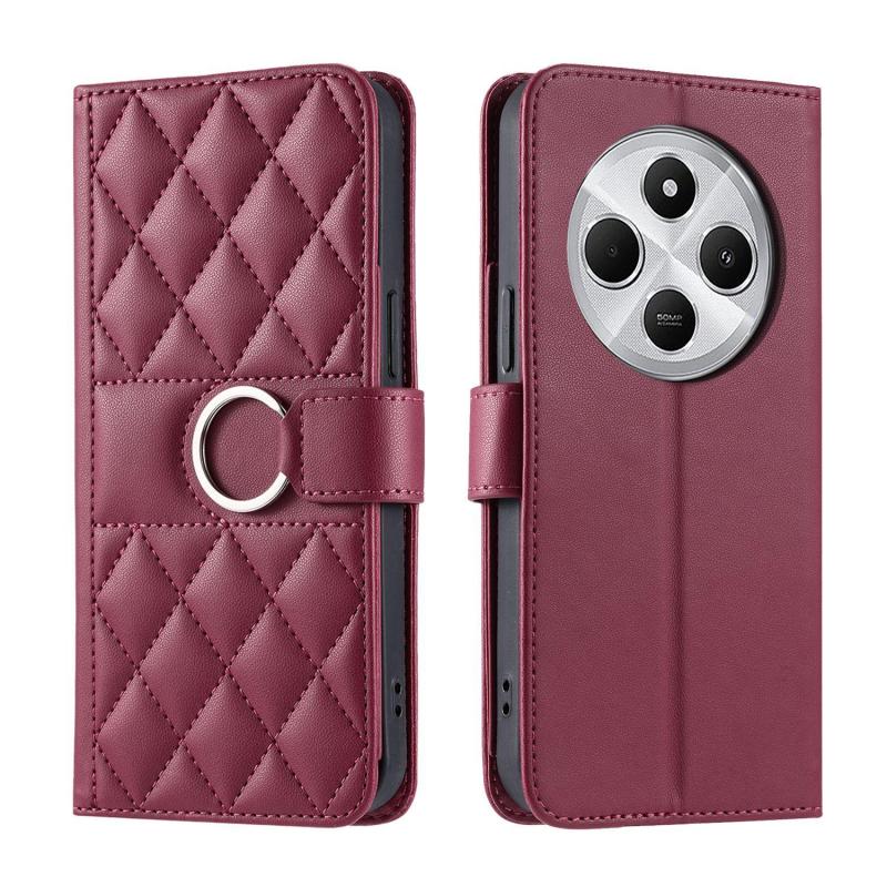 For Redmi 14C 4G / 14R 5G Global Ring Buckle Rhombic Leather Phone Case(Red)