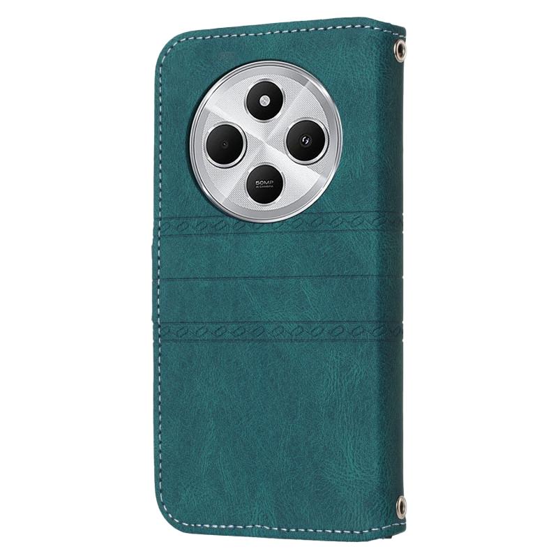 For Redmi 14C 4G Embossed Stripes Skin Feel Leather Phone Case(Dark Green)