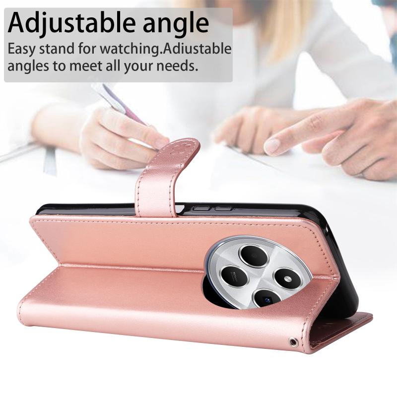 For Redmi 14C 4G Global Cat and Bee Embossed Flip Leather Phone Case(Rose Gold)