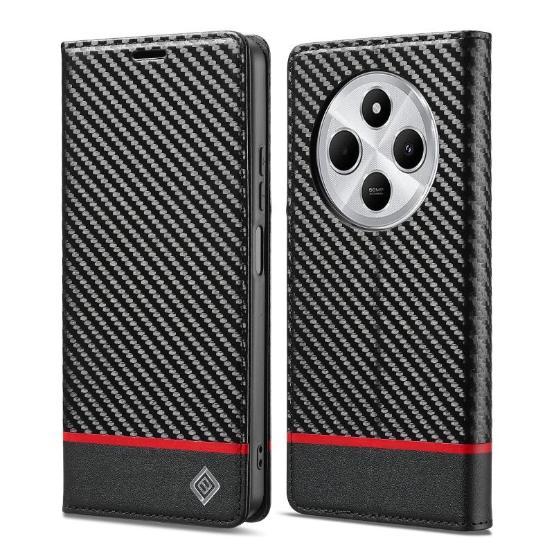 For Redmi 14C 4G LC.IMEEKE Carbon Fiber Texture Flip Leather Phone Case(Horizontal Black) (LC.IMEEKE)