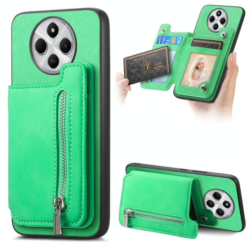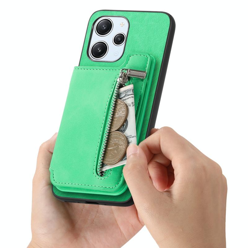 For Redmi 14C 4G Retro MagSafe Zipper Wallet Card Bag Back Phone Case(Green)