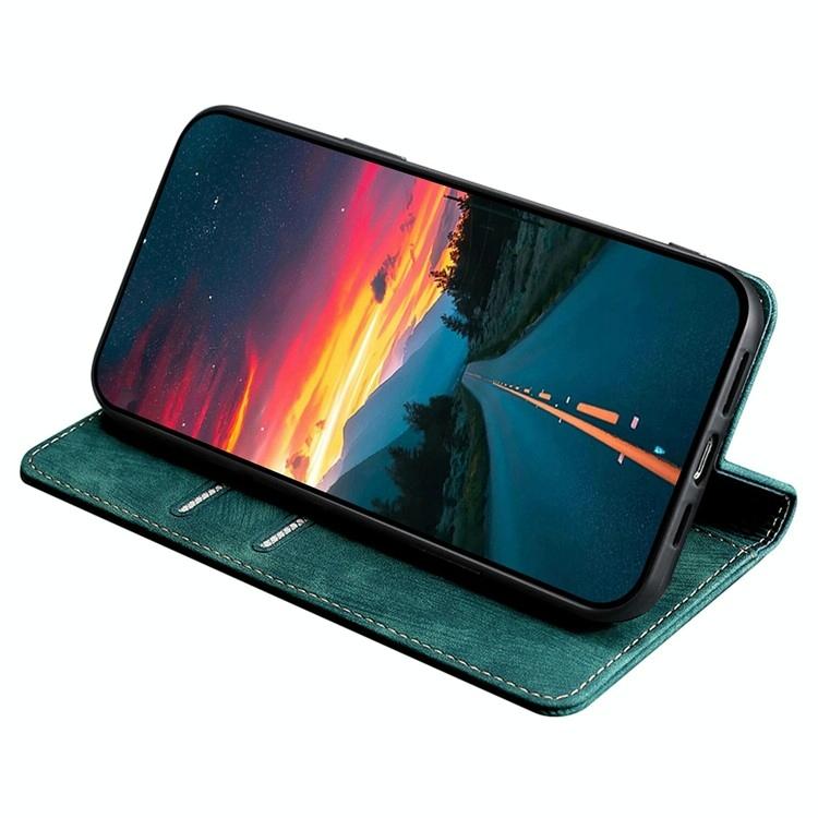 For Redmi 14C 4G RFID Anti-theft Brush Magnetic Leather Phone Case(Green)