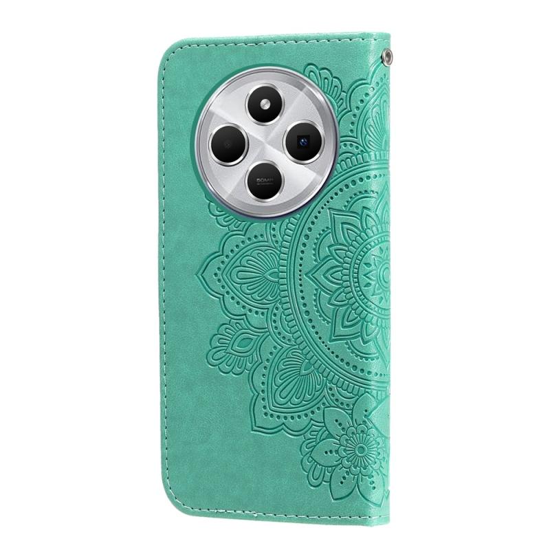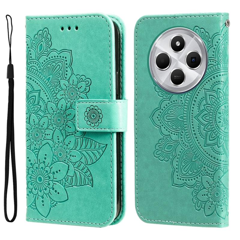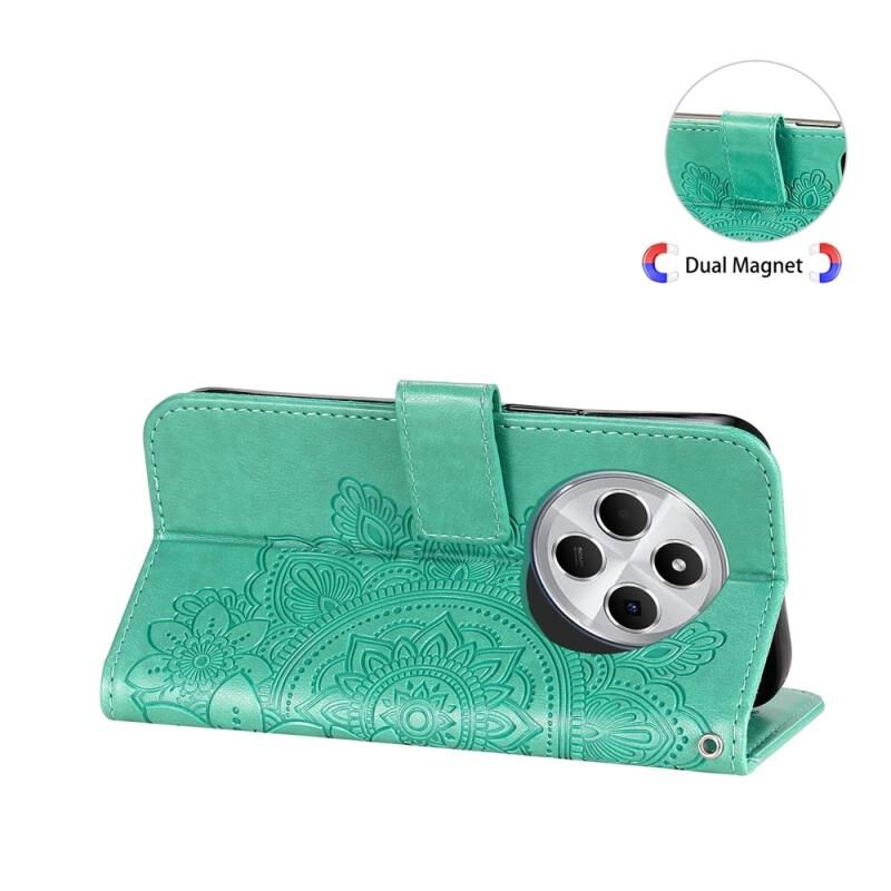 For Redmi 14C 4G Seven-petal Flowers Embossing Leather Phone Case(Green)