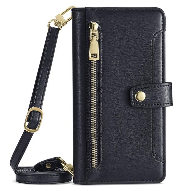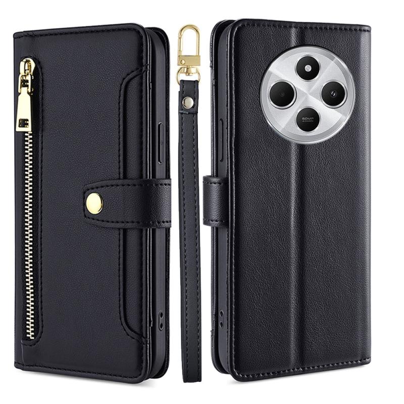 For Redmi 14C 4G Sheep Texture Cross-body Zipper Wallet Leather Phone Case(Black)