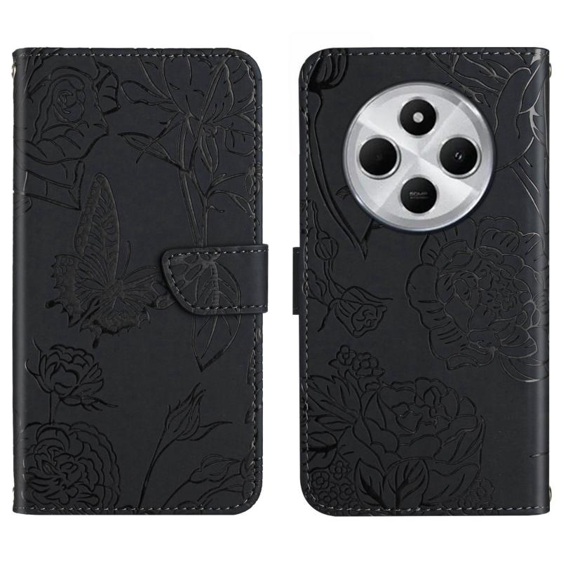 For Redmi 14C 4G Skin Feel Butterfly Embossed Flip Leather Phone Case(Black)