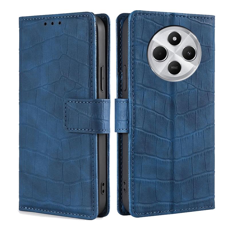 For Redmi 14C 4G Skin Feel Crocodile Magnetic Clasp Leather Phone Case(Blue)