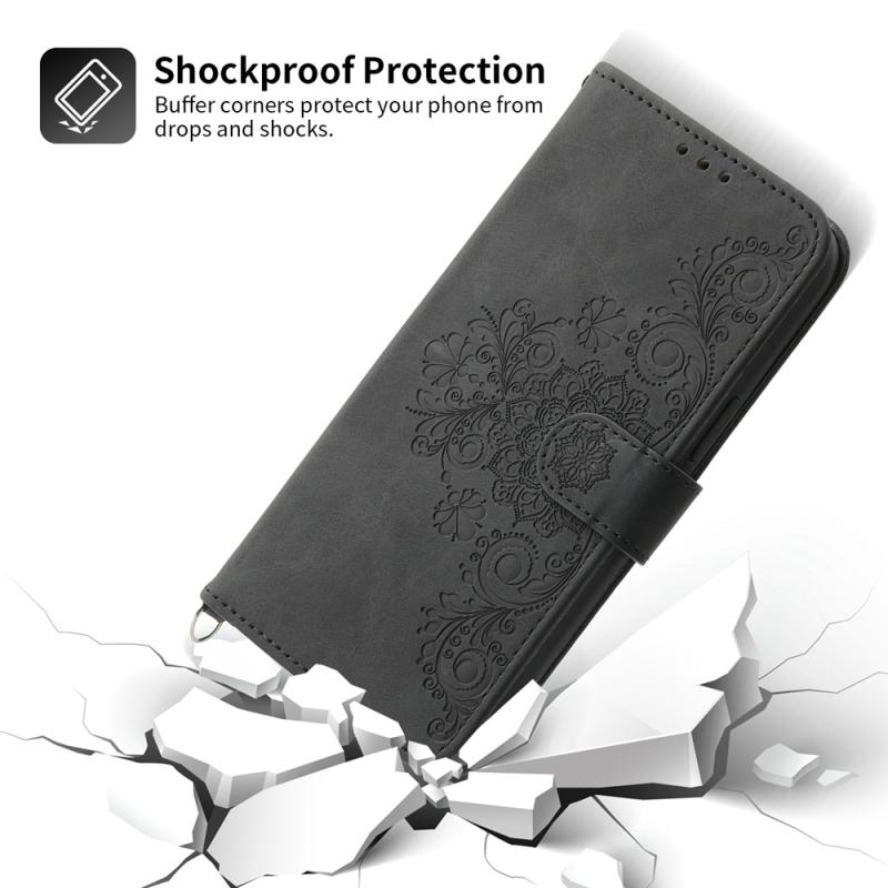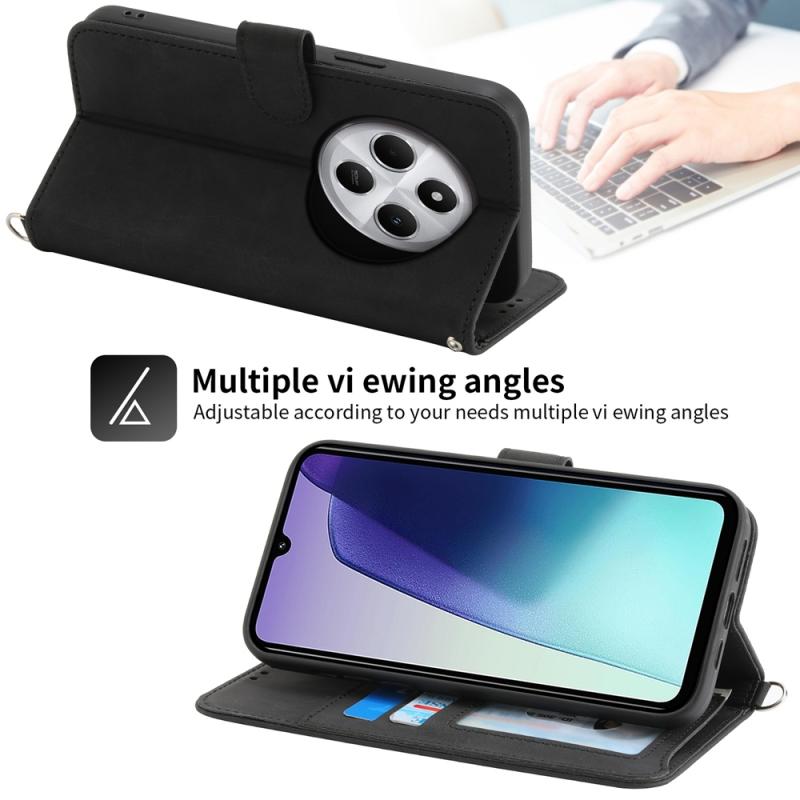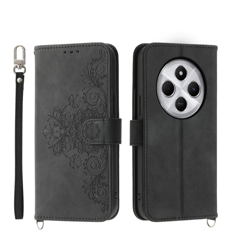 For Redmi 14C 4G Skin Feel Flowers Embossed Wallet Leather Phone Case(Black)