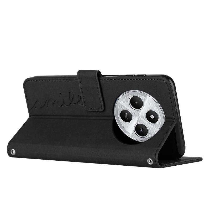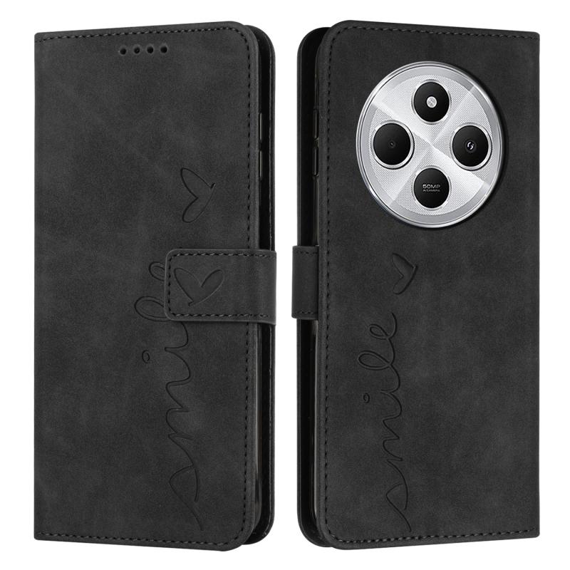 For Redmi 14C 4G Skin Feel Heart Embossed Leather Phone Case(Black)