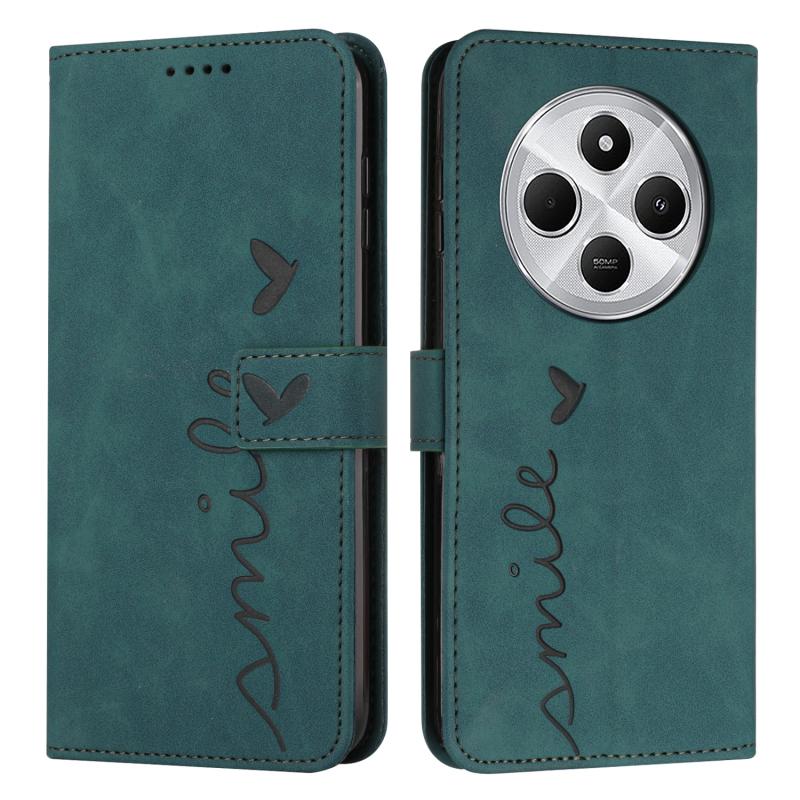 For Redmi 14C 4G Skin Feel Heart Embossed Leather Phone Case(Green)