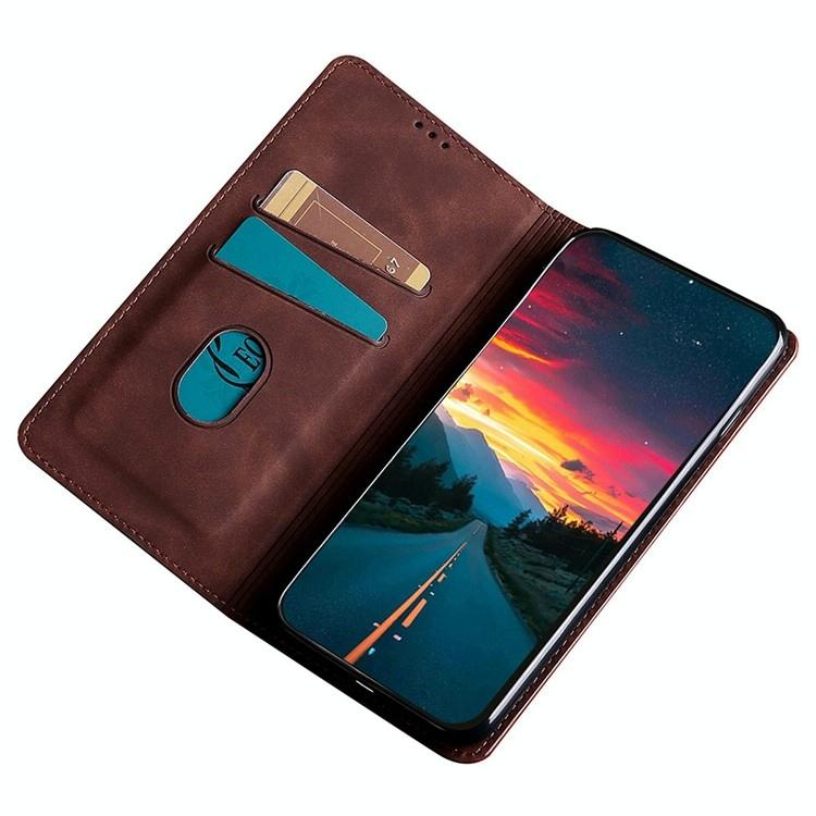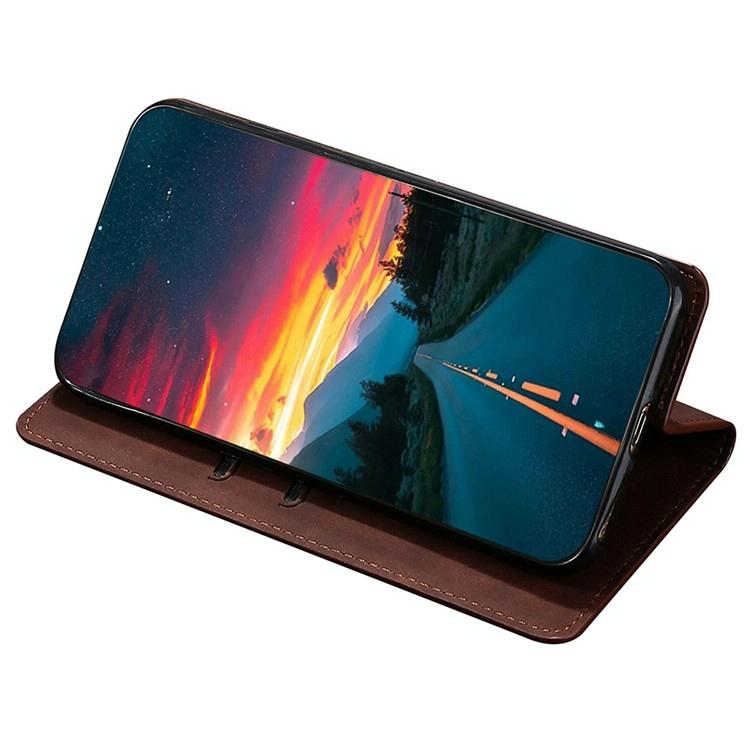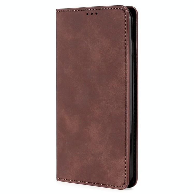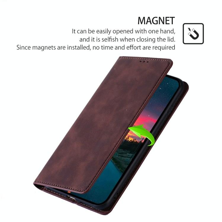For Redmi 14C 4G Skin Feel Magnetic Leather Phone Case(Dark Brown)