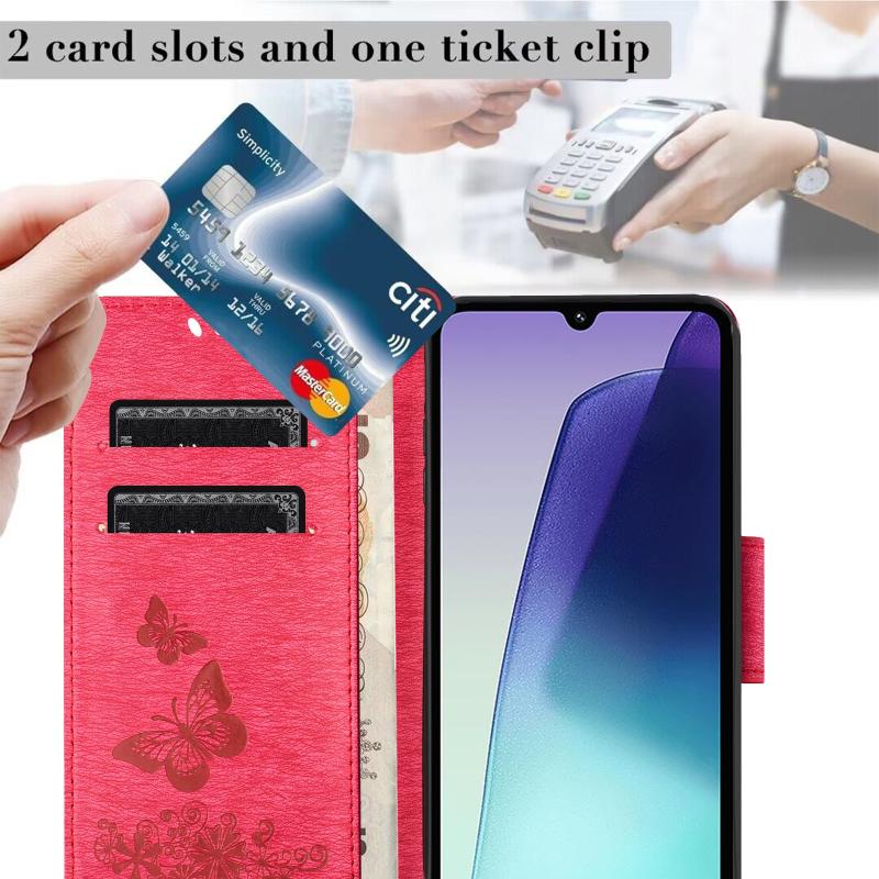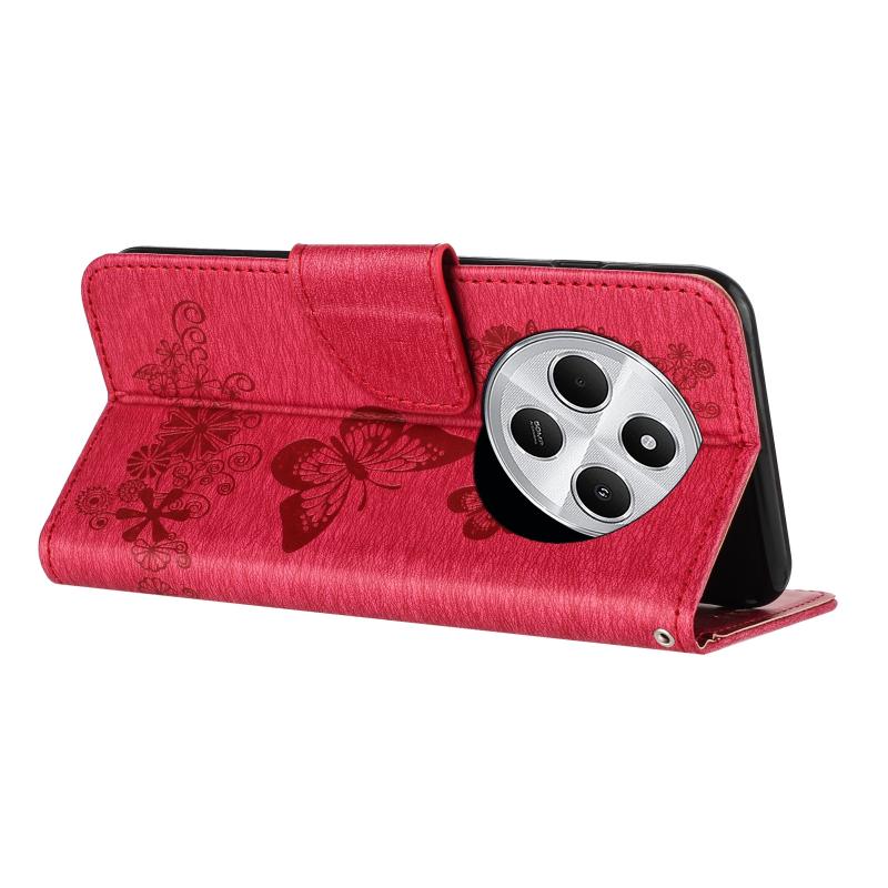 For Redmi 14C Butterfly Embossed Flip Leather Phone Case(Red)