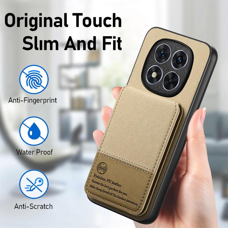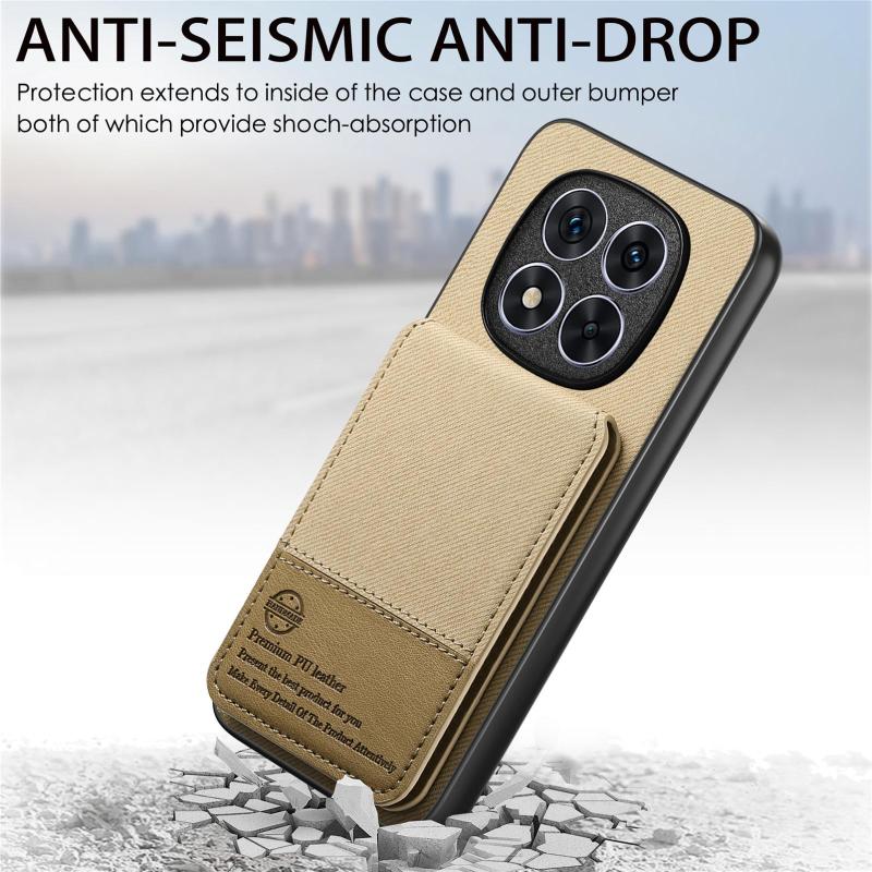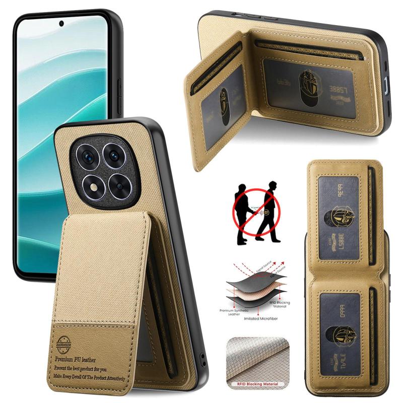 For Redmi 14C Twill Fabric Leather Vertical Flip RFID Card Bag Phone Case(Khaki)