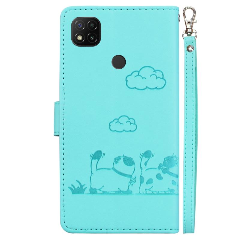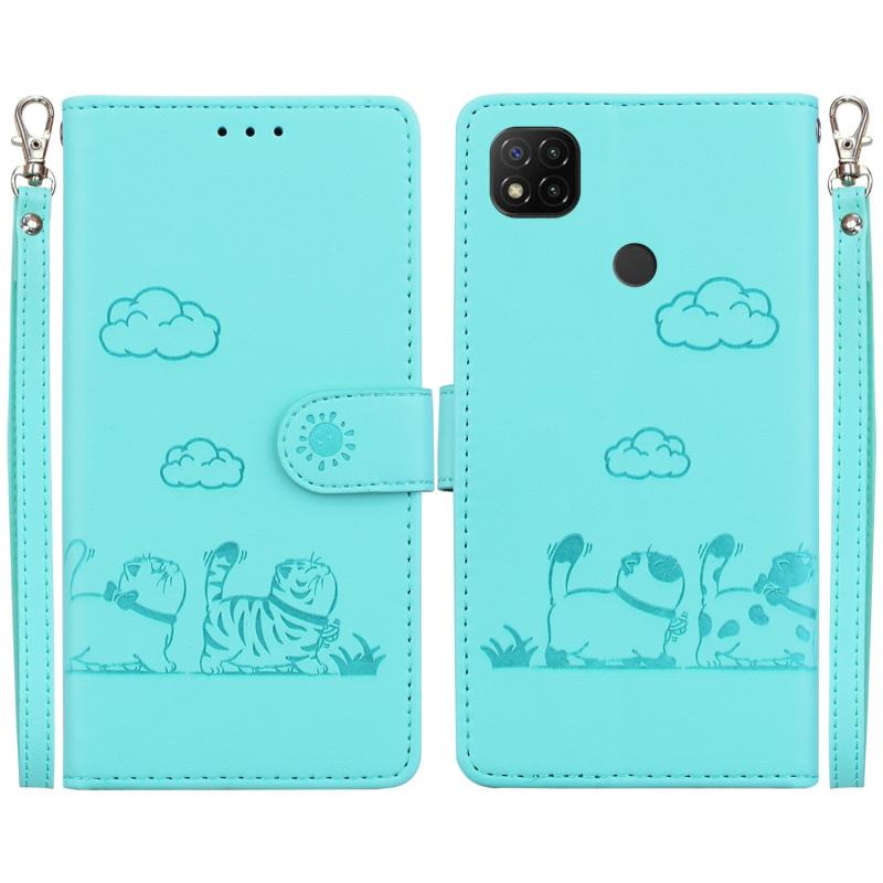 For Redmi 9C / 9 Activ Cute Cats RFID Leather Phone Case(Green)