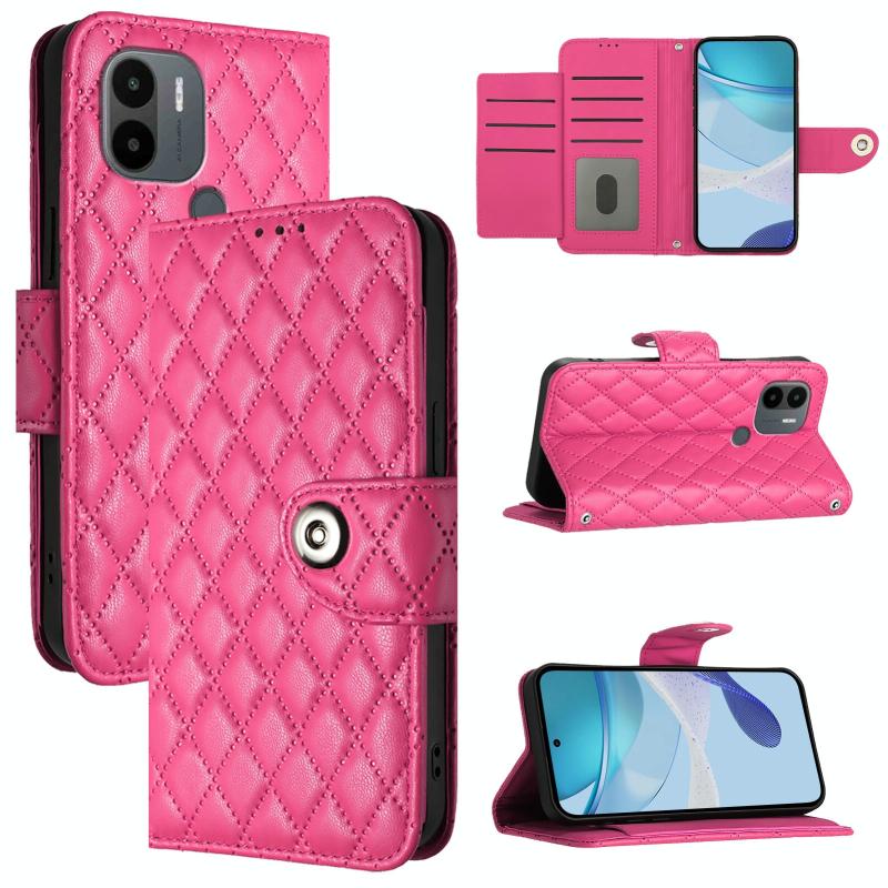 For Redmi A1+ / A2+ Rhombic Texture Flip Leather Phone Case with Lanyard(Rose Red)