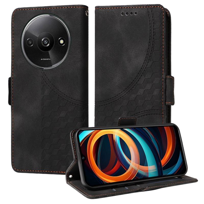 For Redmi A3 4G Global Embossed Rhombus Starry Leather Phone Case(Black)
