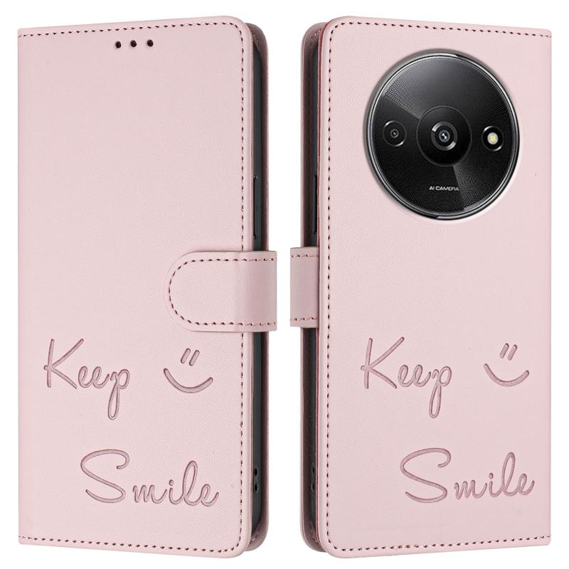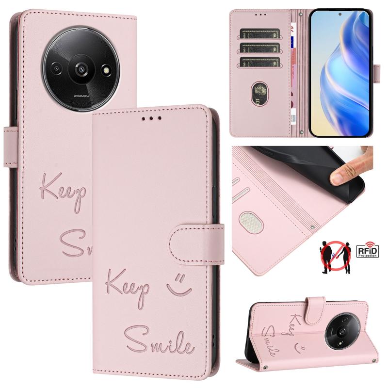 For Redmi A3 4G Global Smile Embossing RFID Leather Phone Case(Pink)