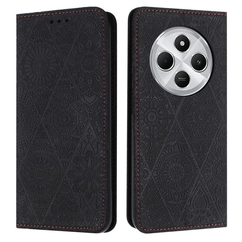 For Redmi A4 5G Ethnic Embossed Adsorption Leather Phone Case(Black)