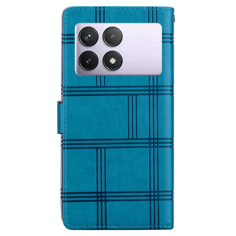 For Redmi K70E / Poco X6 Pro Embossed Checkered Leather Phone Case(Blue)