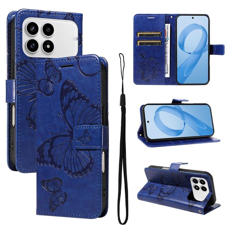 For Redmi K90/Poco F8 Pro 3D Butterfly Embossed Pattern Flip Leather Phone Case(Blue)