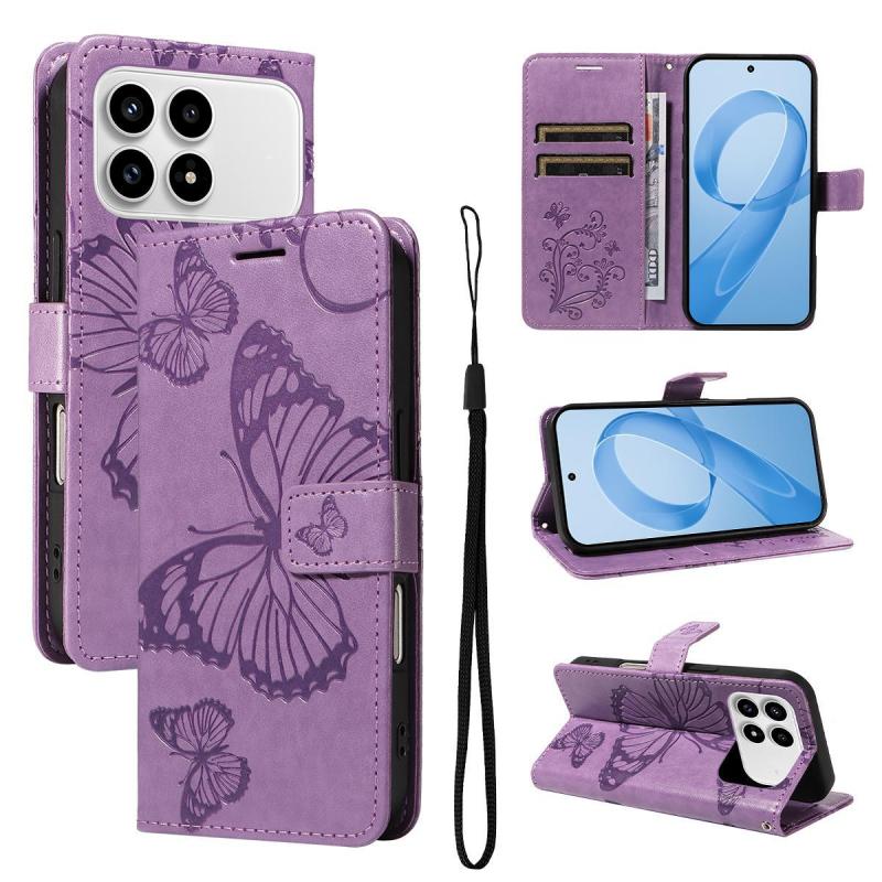 For Redmi K90/Poco F8 Pro 3D Butterfly Embossed Pattern Flip Leather Phone Case(Purple)