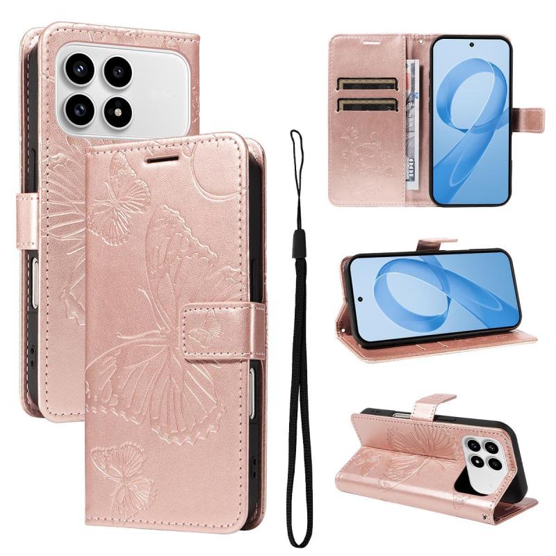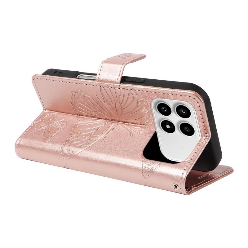 For Redmi K90/Poco F8 Pro 3D Butterfly Embossed Pattern Flip Leather Phone Case(Rose Gold)