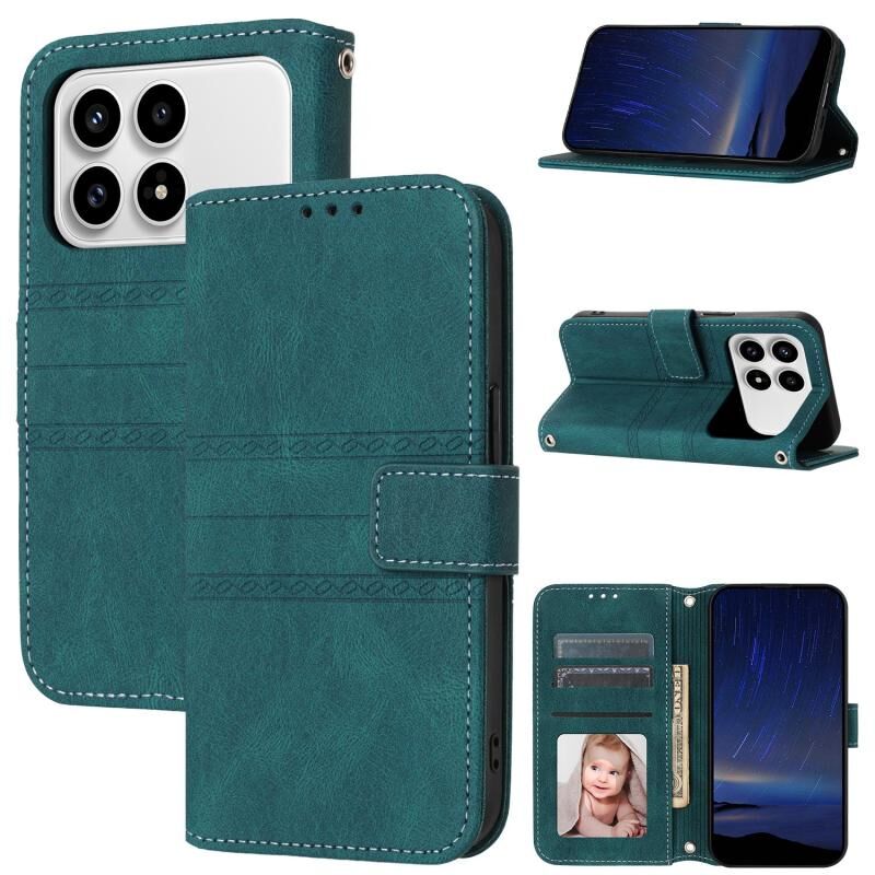 For Redmi K90 / Poco F8 Pro Embossed Stripes Skin Feel Leather Phone Case(Dark Green)
