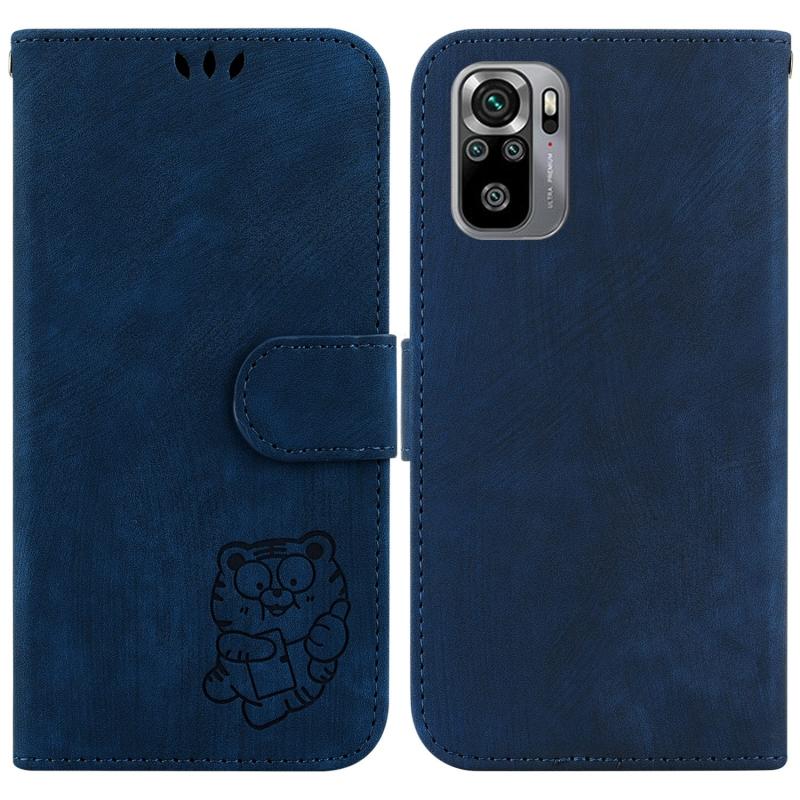 For Redmi Note 10 4G / Note 10S Little Tiger Embossed Leather Phone Case(Dark Blue)