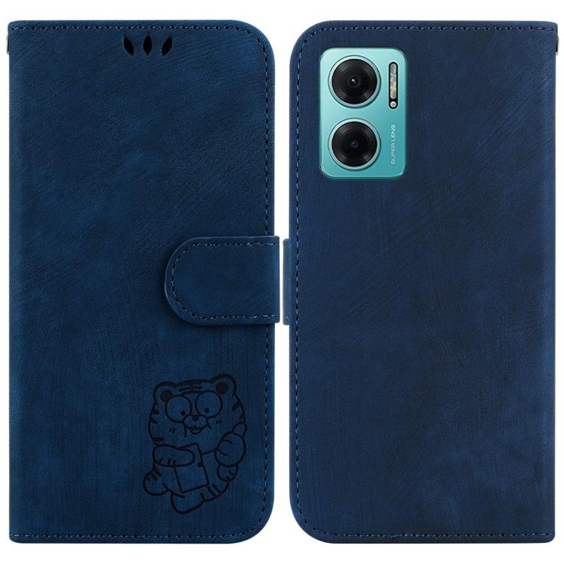 For Redmi Note 11E / Redmi 10 5G Little Tiger Embossed Leather Phone Case(Dark Blue)