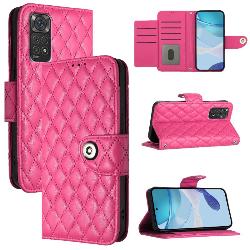 For Redmi Note 11S 5G Rhombic Texture Flip Leather Phone Case with Lanyard(Rose Red)